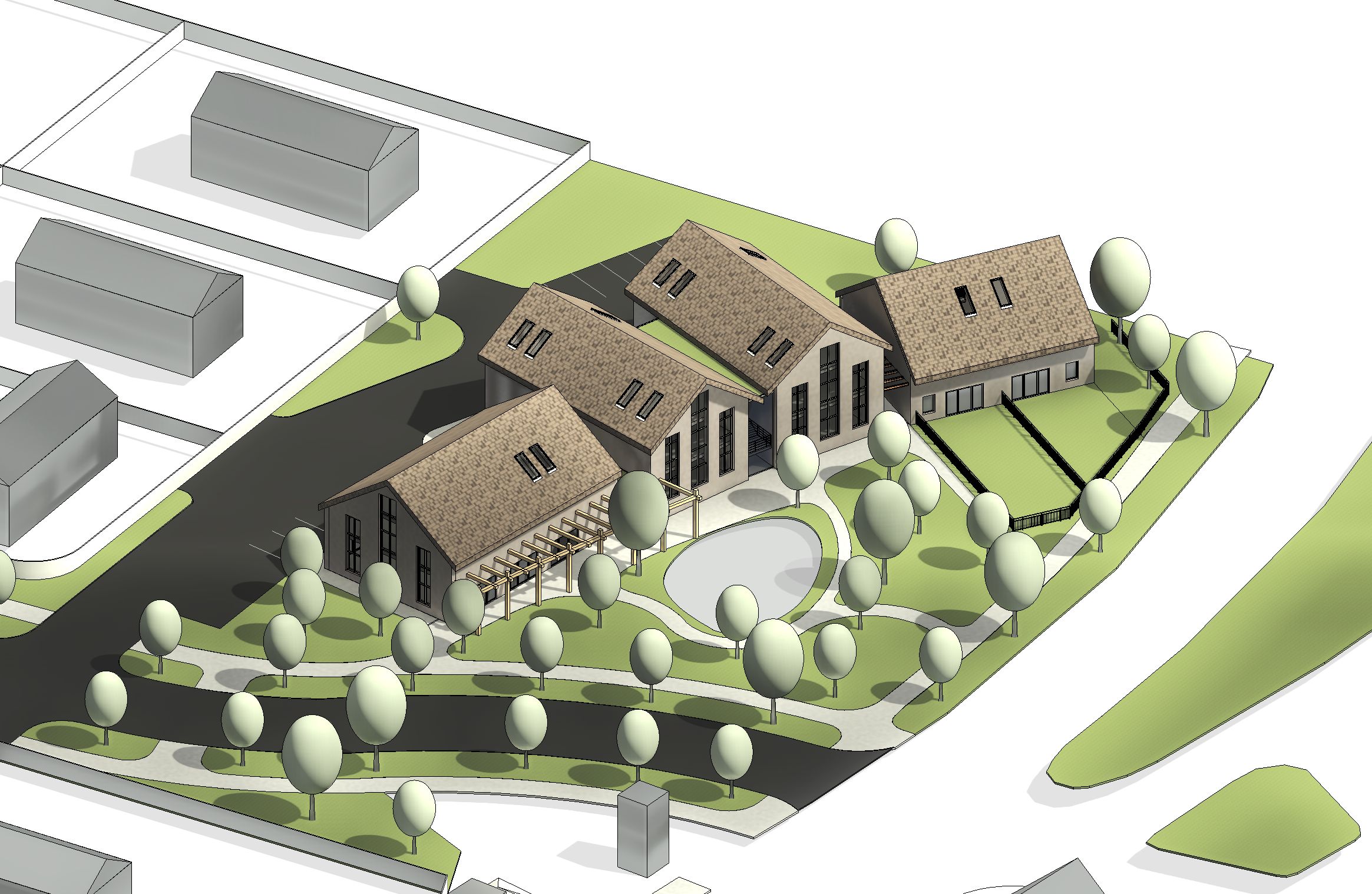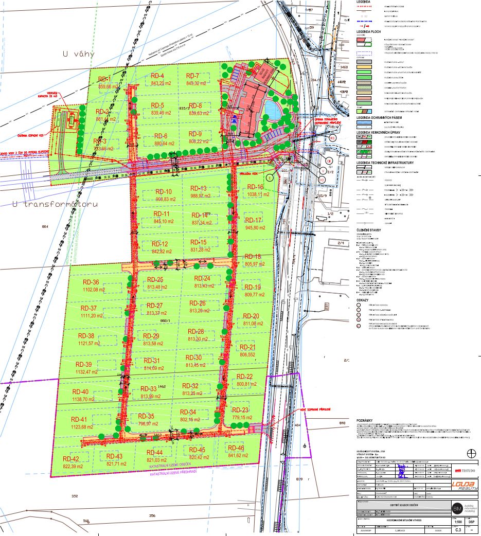 Rozvoj území, napojení na infrastrukturu, parcelace pro rodinné domy, návrh bytového domu.