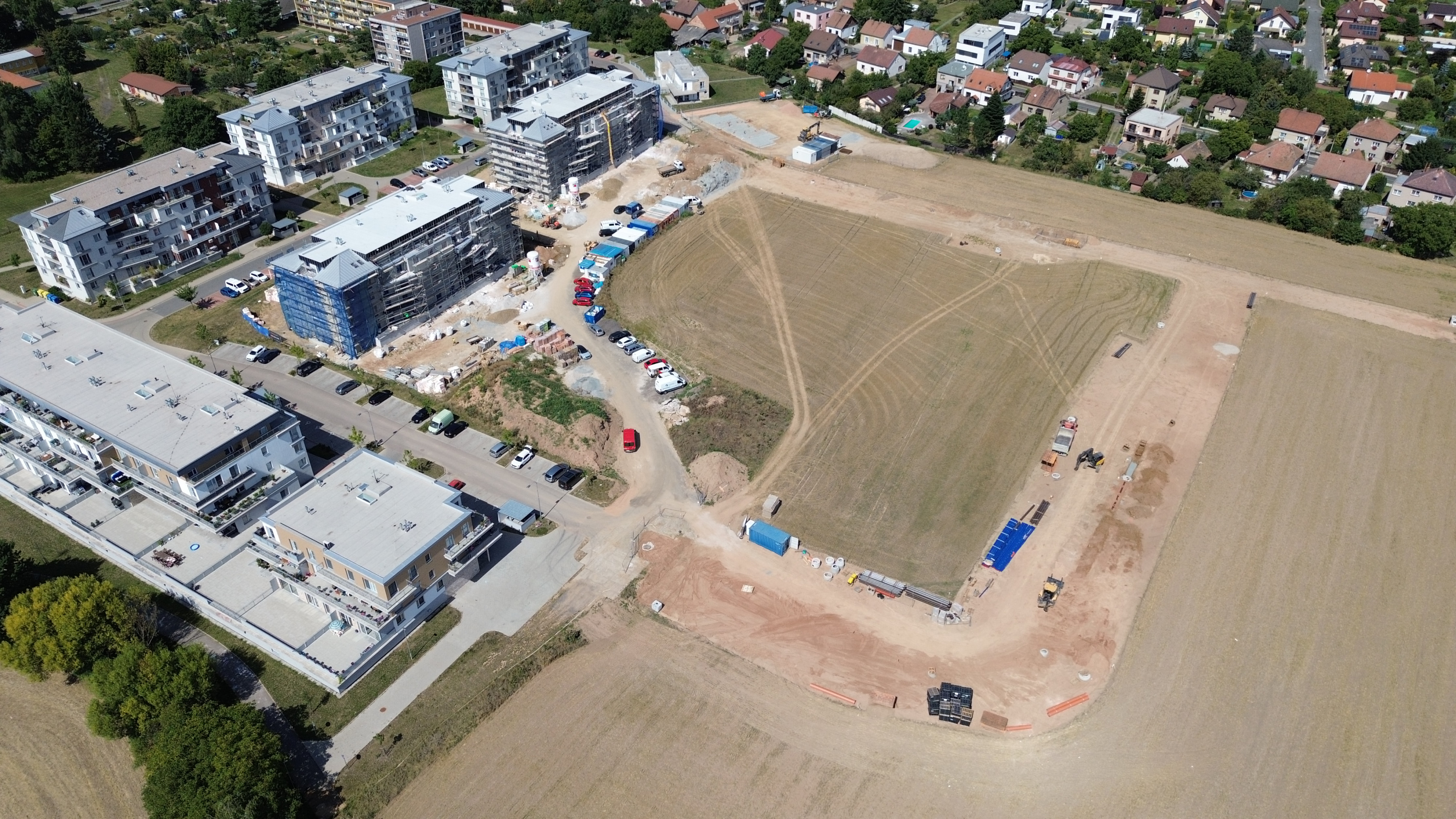 Příprava území pro další rozvoj a výstavbu dalších etap obytných budov.